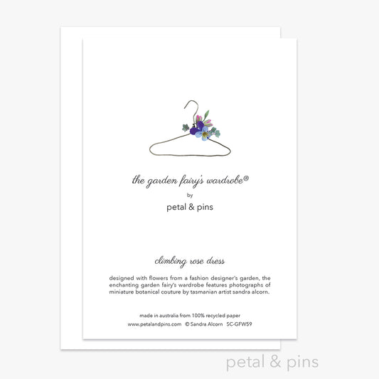 petal & pins signature range the Garden Fairy’s Wardrobe® features gorgeous miniature botanical couture designed with flowers and foliage from the petal & pins garden, infused with a fashion sensibility and a touch of whimsy.